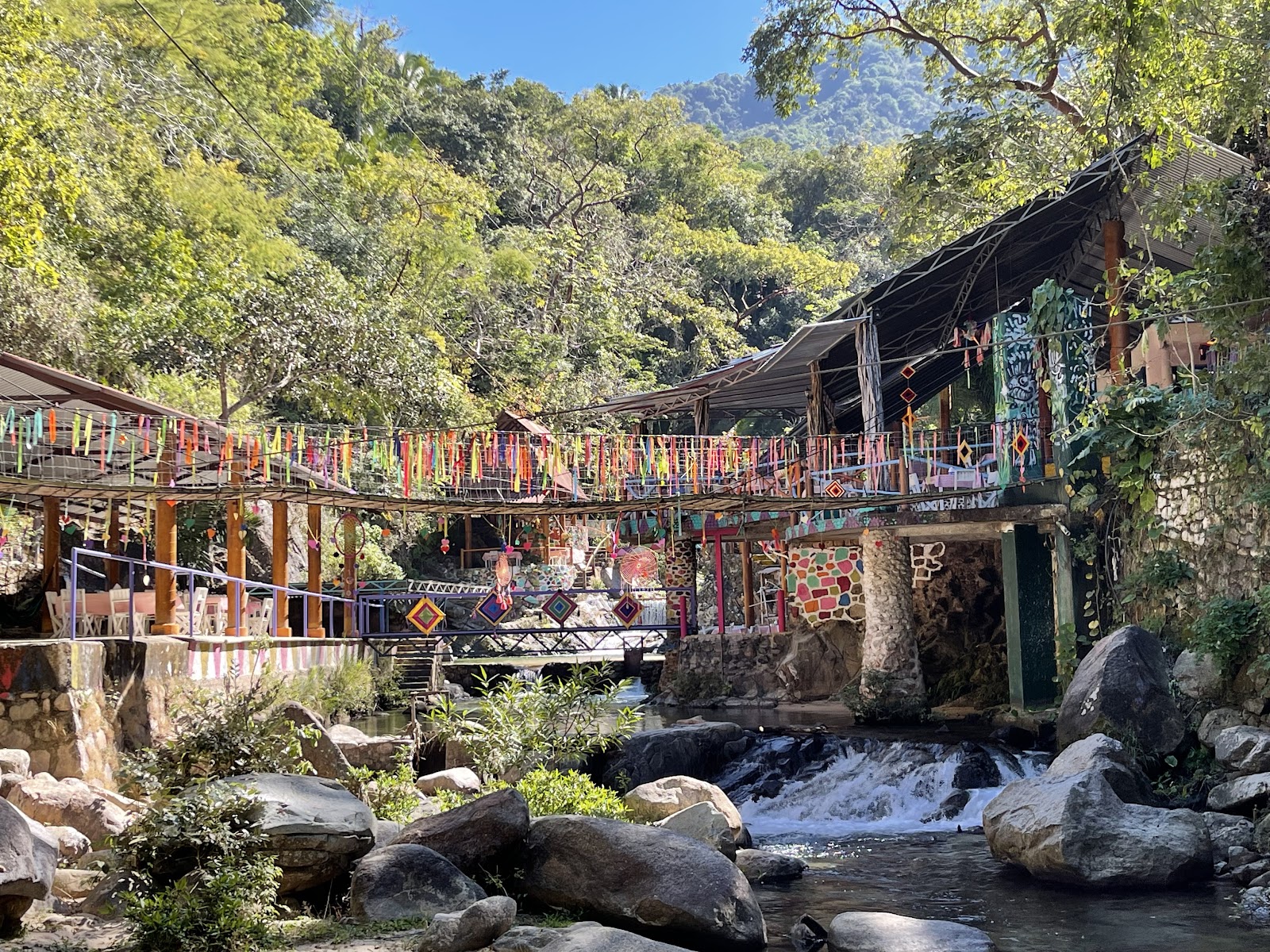 Bienvenidos a Kawitu Theme Park, un rincón encantador en Mismaloya cerca de Puerto Vallarta donde la naturaleza y la diversión se unen. Este parque es perfecto para quienes buscan una experiencia al aire libre en un entorno tranquilo y hermoso. Aunque el tiempo puede ser limitado, los visitantes pueden disfrutar de un refrescante chapuzón en el río, rodeados de vistas impresionantes que invitan a la relajación. La atención al cliente es uno de los aspectos más destacados, haciendo que cada visitante se sienta como en casa. La comida es otro punto fuerte: aunque los precios pueden parecer elevados, las porciones son generosas y el sabor es innegablemente delicioso. No olvides llevar repelente de insectos para disfrutar al máximo tu visita. En Kawitu, cada rincón ofrece una experiencia única, desde sus aguas cristalinas hasta su ambiente acogedor. Si buscas un lugar para compartir con amigos o familia, este parque es una excelente opción para disfrutar de un día lleno de aventura y descanso. A solo 5 minutos después del zoológico de Vallarta a mano derecha.